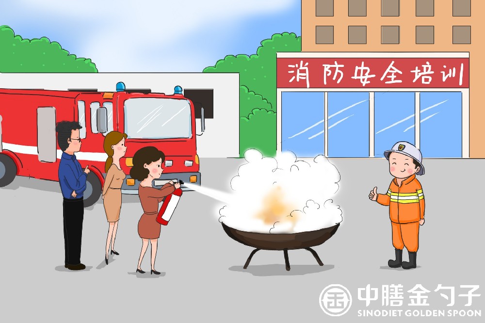 餐饮门店作为人员密集的工作场所,消防安全更是重中之重。中膳金勺子各门店依据现场实际情况开展了消防安全应急演练——灭火器/灭火毯使用方法、油锅着火处理、消防应急逃生等内容,做到人人会救急,人人懂逃生。