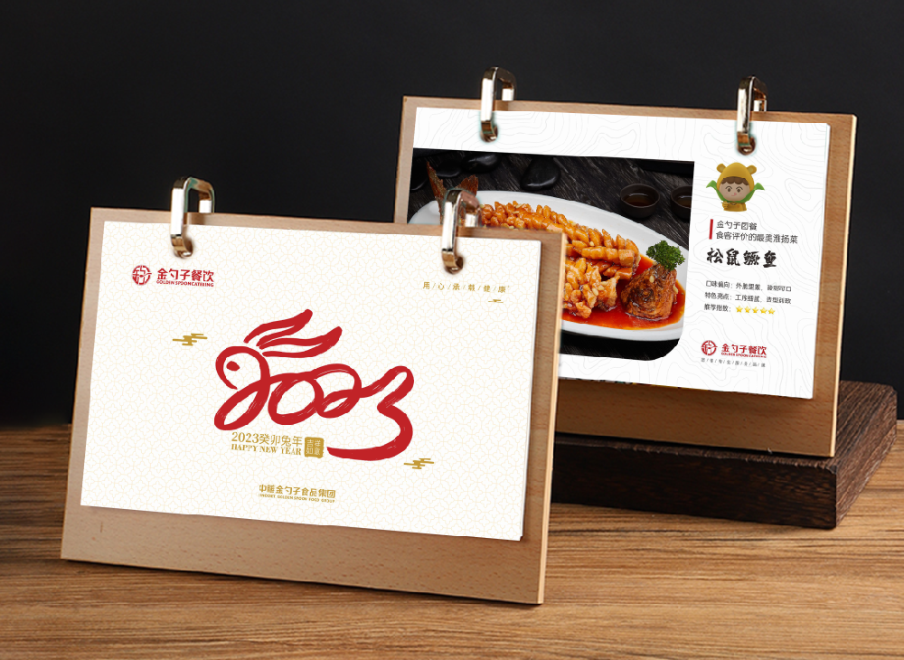 值得注意的是,2023年金勺子台历除了延续了以往的传统制作外,还添加了“二十四节气养生美食”、“金勺子团餐最受食客追捧的菜肴推荐”等版块。下面来一起揭开这神秘的面纱。