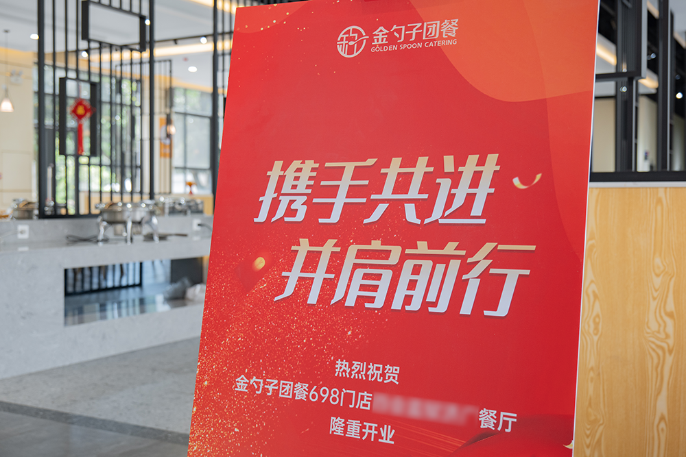 五五世纪再添新店,实力绽放!金勺子餐饮项目698门店于7月28日盛大开业,集团副总裁刘波出席开业典礼。