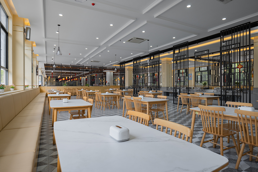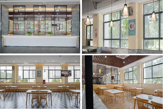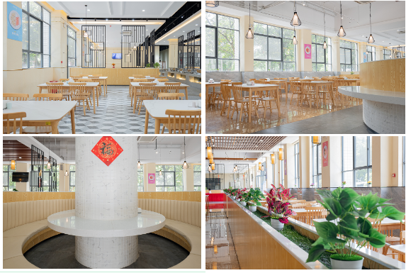 为员工营造一个温馨、优质的就餐环境,项目经过前期的精心筹备,在现场可以看到食堂门店环境整洁、宽敞明亮,各类设施齐全。